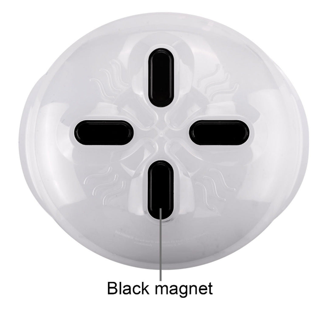 Detta smarta och multifunktionella stänkskydd gör uppvärmningen enklare, snabbare och mycket renare. Locket är utrustat med starka säkerhetsmagneter, vilket gör att det kan fästas i mikrovågsugnens tak när det inte används – ingen mer kladdig förvaring eller bortglömda lock!