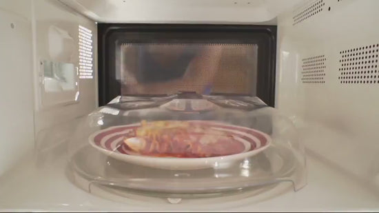 När du värmer mat svävar locket lätt över tallriken och skyddar hela insidan från stänk, spill och fett. Det värmetåliga plastmaterialet är säkert, tåligt och lätt att rengöra – perfekt för daglig användning.