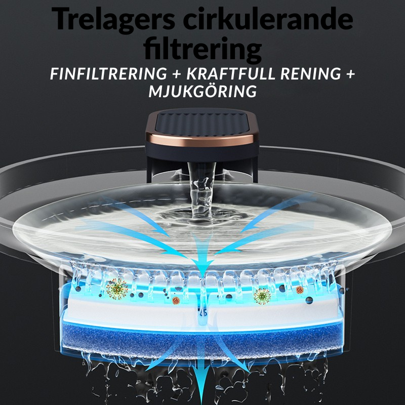 Automatisk vattenpåfyllning: Vattnet cirkulerar kontinuerligt vilket håller det fräscht och syresatt.